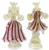 Coppia Damine Goldoniane in Vetro Di Murano100% Artigianale Statuine Sculturee Rosa Zanfirico Made in Italy Venezia Con Polvere D'oro