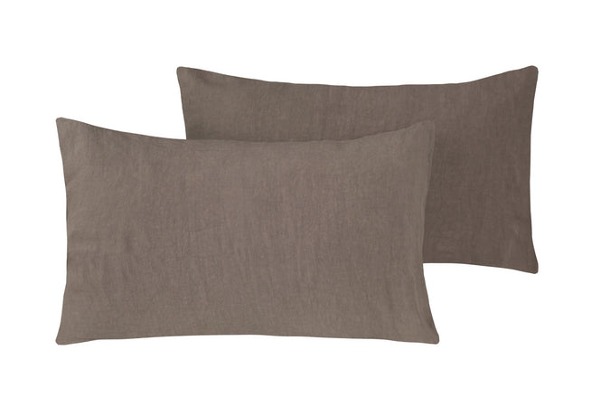 Coppia di federe in puro lino stone washed Tortora