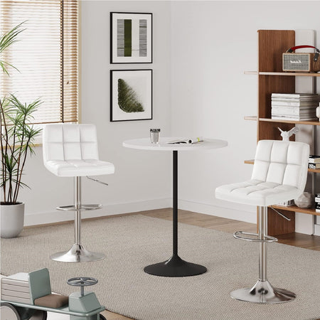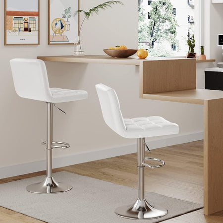 Coppia Sgabelli da Cucina Bar Bistrot, Pelle Ecologica Imbottito Poggiapiedi Bianco