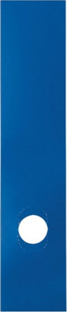 Copridorso in morbido PVC autoadesivo e in tinta unita. Dotato di foro adattabile a qualsiasi registratore. Retro adesivo coprente. Formato 70x345 mm. Colore blu brillante.