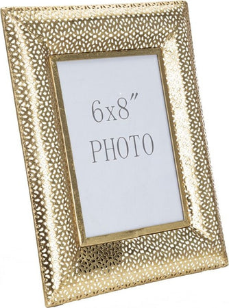 Elegante cornice portafoto in metallo dorato impreziosità da eleganti intagli. Un tocco glam che dona luminosità ad ogni stanza.