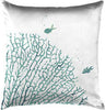 Cuscino Arredo Bifaccia 100% Cotone Made In Italy Coralli Tre Pesci Azzurro / Naturale 40x40cm