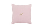 Cuscino Arredo con elegante iniziale ricamatain puro lino stonewashed Rosa