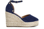 Décolleté in tessuto con borchie su zeppa corda