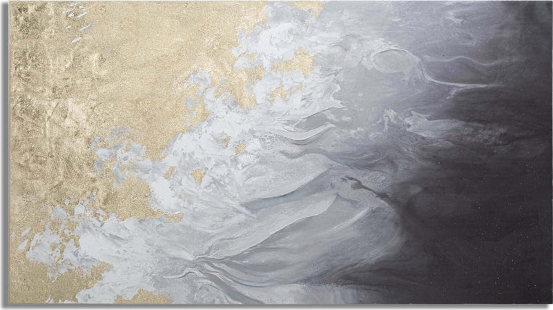 Dipinto su tela con telaio in legno. Originali dipinti astratti dalle linee ipnotiche che uniscono la brillantezza dell'oro all'eleganza dell'argento e del nero conferendo un stile unico. Un tocco d'arte direttamente a casa tua.