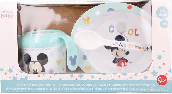 Disney Set Prima Pappa 3 Pezzi Topolino Azzurro Mickey Mouse Bambini Asilo