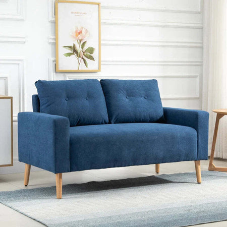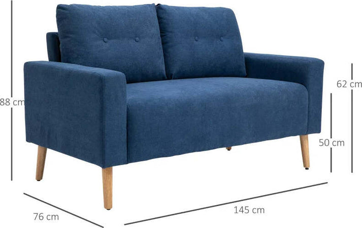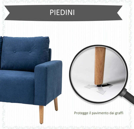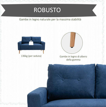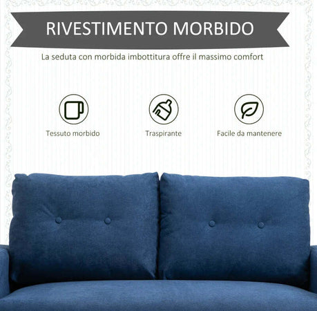 Divano 2 Posti Moderno e Trapuntato in Stile Nordico, in Poliestere e Legno, 145x76x88 cm, Blu SE2833-902BURT3