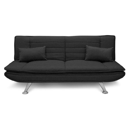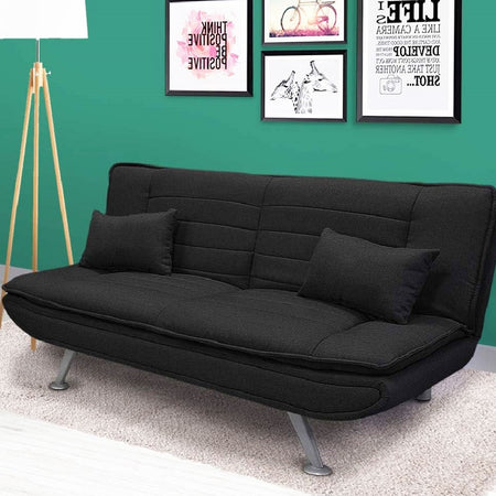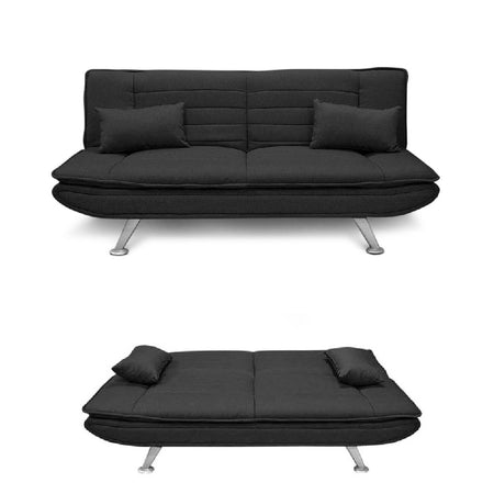 Divano 3posti Letto Reclinabile Clic Clac Tessuto Imbottito 2 Cuscini 183cm Nero
