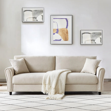 Divano 3Posti Tessuto Imbottito Relax Design Moderno 212cm Struttura Legno Beige