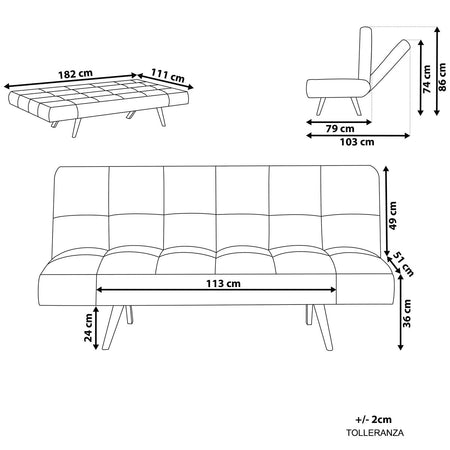 Divano letto 2 posti Vissland con braccioli regolabili e Apertura Clic Clac Grigio