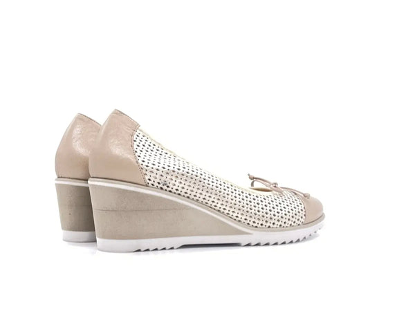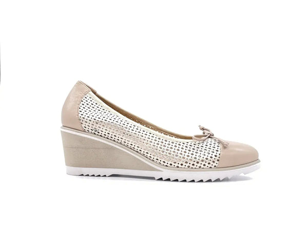 DONNA SOFT Decollete con zeppa beige traforato 7285