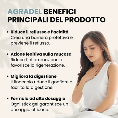 Agradel - Integratore naturale per reflusso gastroesofageo e bruciore di stomaco - 48 stick gel da 15g con Mucosave®, aloe vera e finocchio