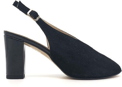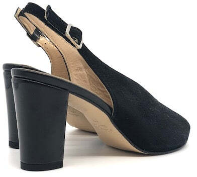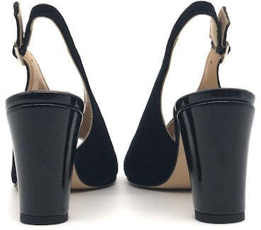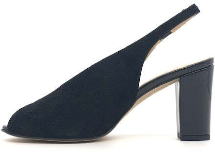 ELLEN Sandalo donna in camoscio nero tacco 75 il tacco in vernice e la parte superiore elastica per favorire una buana calzata anche con un collo delpiede alto