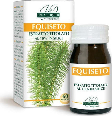 EQUISETO ESTRATTO TITOLATO integratore alimentare 60 pastiglie Dr. Giorgini. L’equiseto favorisce il benessere di unghie e capelli promuovendo il trofismo dei tessuti connettivi. Inoltre, promuove il drenaggio dei liquidi corporei e la funzionalità delle vie urinarie.