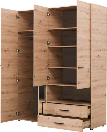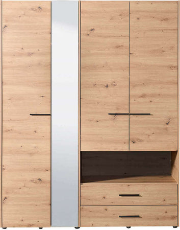 ESSENZA - armadio 4 ante 2 cassetti con specchio cm 161 x 55 x 205,5 h Rovere Chiaro Milani Home