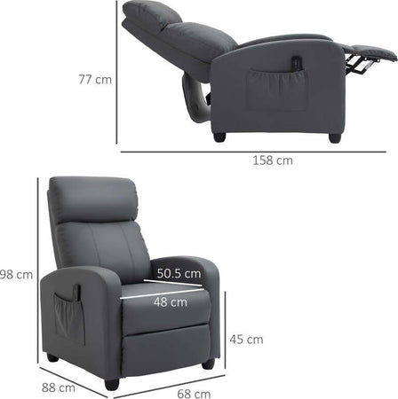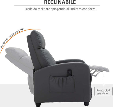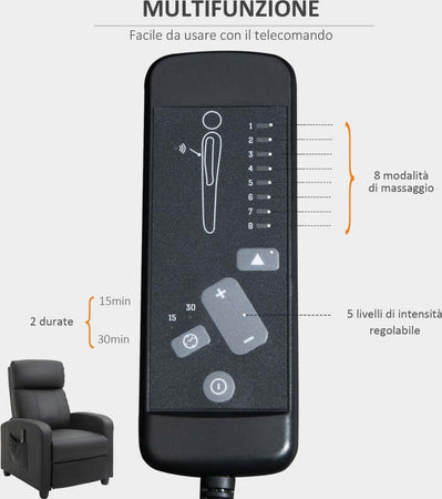F700-143V90GYA Poltrona Relax Massaggiante con Telecomando e 8 Programmi, Reclinazione e Poggiapiedi, 68x88x98cm, Grigio
