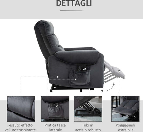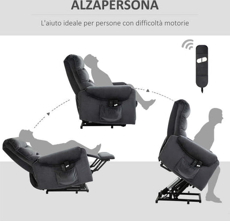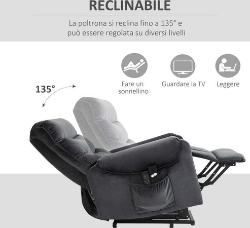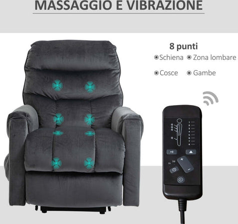 poltrona anziani disabili elettrica alza persona soggiorno salotto poltrona letto relax massaggiante con telecomando punti massaggio vibrazione riscaldante alzata assistita massaggi imbottita velluto grigio poltrone elettriche R5B713-090V90CGGG7