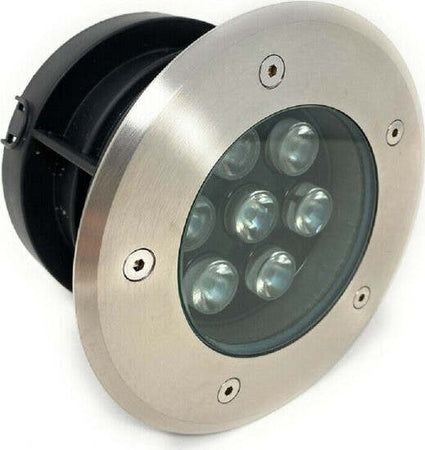Faretto ad incasso da terra calpestabile, con 7 led che garantisce un'ottima fonte luminosa. Con grado di protezione IP67 resistente alla pioggia, da installare in giardini, vialetti, fontane, ecc.