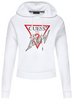 Felpa Donna Guess Tinta Unita Bianca Con Logo Centrale Felpa Con Cappuccio 100% Cotone Felpa Casual Manica Lunga