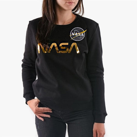 Felpa girocollo donna con ricamo e stampa NASA sul petto.