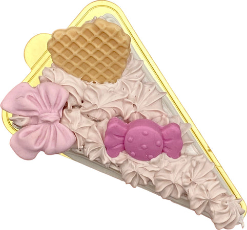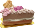Fetta di torta finta da esposizione rosa con caramella fiocco e biscottino