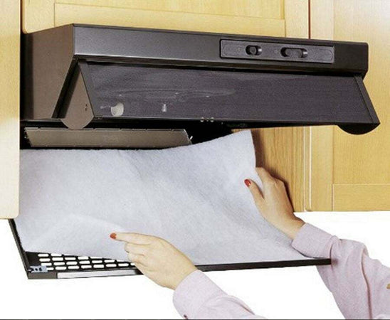 Filtro in poliestere autoestinguente adatto per tutte le cappe aspiranti da cucina, assorbe sia odori che sapori ed è ritagliabile secondo la grandezza della cappa.
