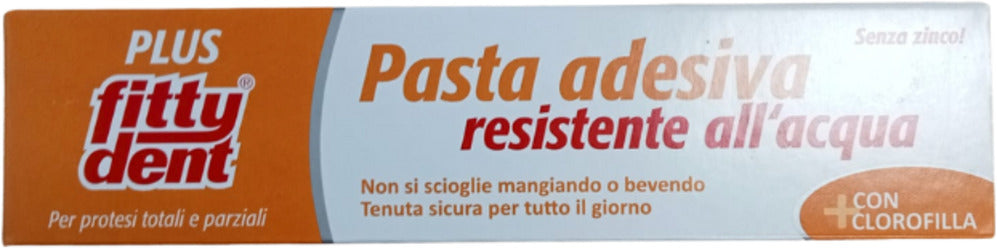 Pasta adesiva per protesi mobili arricchita con clorofilla, che inibisce la formazione di cattivi odori, per una freschezza lunga tutto il giorno. Grazie all'azione combinata di due componenti brevettati, Fittydent Plus agisce su due fronti, aderendo sia alla protesi che alla mucosa assicurando una tenuta insuperabile per 12 ore. La speciale formulazione, inoltre, rende questa pasta adesiva totalmente insapore ed insolubile, consentendo di gustare al meglio i sapori dei cibi.