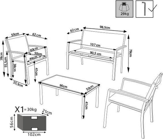 FLAVUS - salotto da giardino 2 posti in ferro Grigio Milani Home