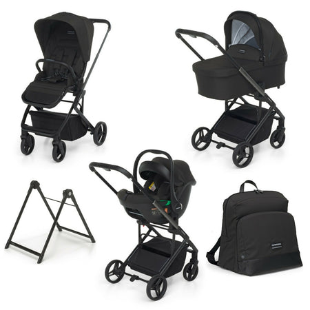 FOPPAPEDRETTI Sistema Combinato TicToc i-Size colore Ebony - trio full completo - navicella, passeggino, ovetto seggiolino auto, borsa Pretty, base Elevo