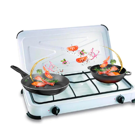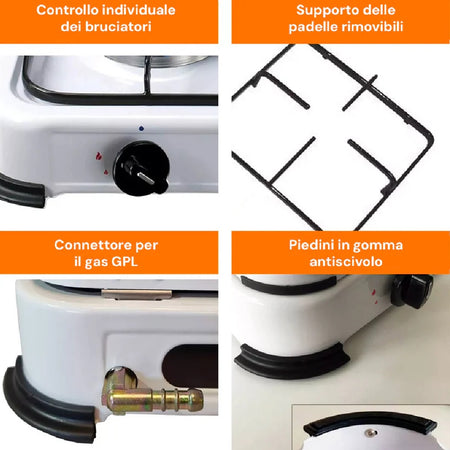 Fornello Cucina a Gas 2Fuochi Accensione Manuale Campeggio Casa Fiamma Regolabile