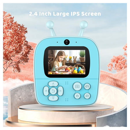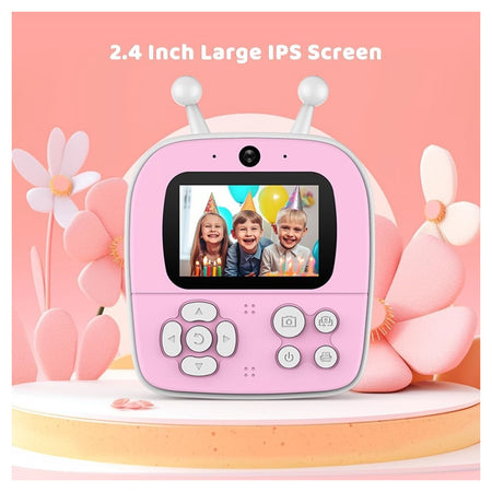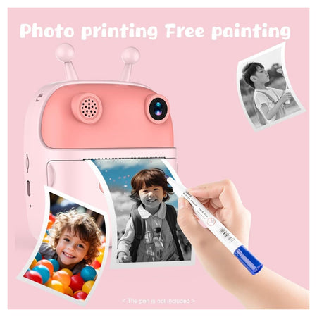 Fotocamera A Stampa Istantanea Per Bambini Digitale 1080p Doppio Obiettivo Con Carta