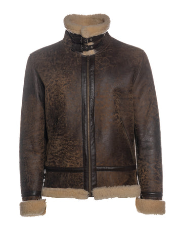 Franco - Giacca Uomo Beige effetto Graffiato in vero montone Shearling