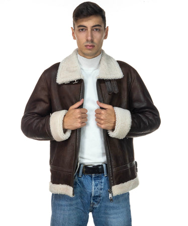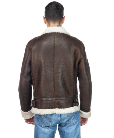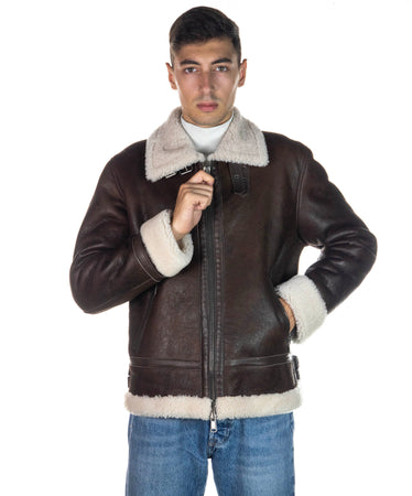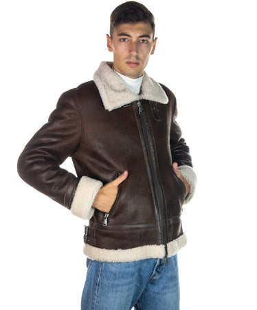 Franco - Giacca Uomo Testa di Moro effetto Liscio in vero montone Shearling
