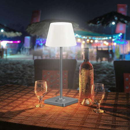 Lampada da tavolo ricaricabile con grado di protezione IP44: FRAPOW Lampada da tavolo ricaricabile ha un grado di protezione dai liquidi ottimo per l’uso sia all’interno che all’esterno; puoi utilizzarla a casa, in ufficio, in giardino, in terrazza, nel balcone o nei ristoranti e strutture ricettive, in ogni stagione dell’anno.