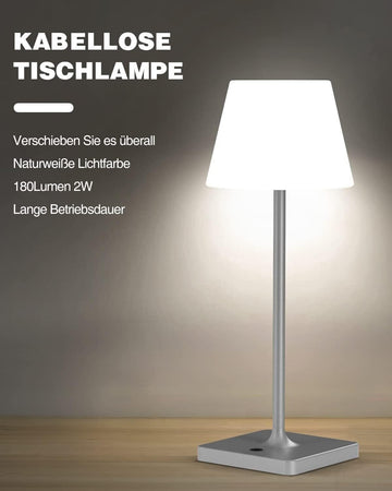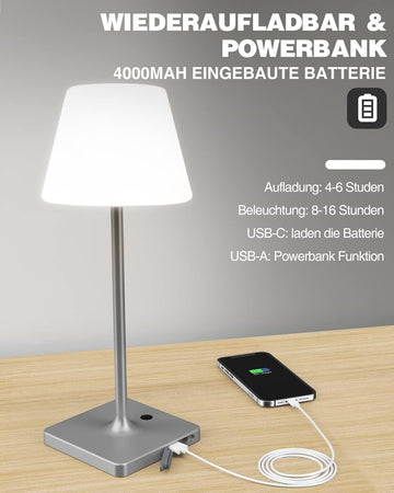 FRAPOW Lampada da tavolo senza fili - Ricaricabile LED Eye-Protect Lampada da Tavolo - 4000mAh Batteria - Corpo in Alluminio - IP44 Uso Interno ed Esterno - Grigio [Classe di efficienza energetica G]
