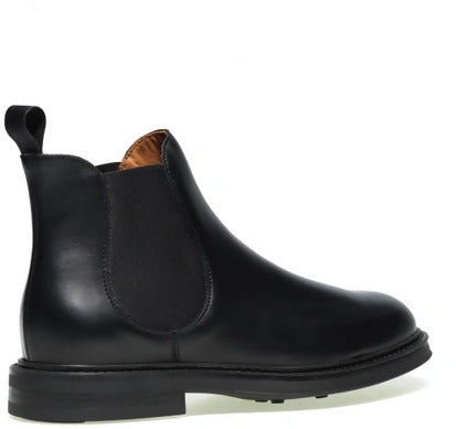 Frau uomo beatles in pelle che accompagna i tuoi look quotidiani. La calzata risulta easy-on grazie all'elastico bilaterale e al pull-up retro. All' interno fodera e sottopiede in pelle non estraibile. La suola in gomma da 3 cm e dotata di grip antiscivolo e il guardolo e' impunturato. Gambale alto 13 cm. Made in Italy. Nuova collezione. Disponibile in due variante di colore nero in pelle e blu scamosciato (vedi foto allegate).