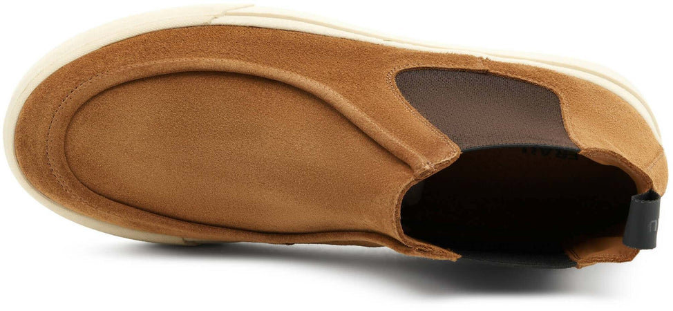 Frau uomo Beatles realizzato in pelle scamosciata con elastici bilaterali e pull up sul retro che facilitano la calzata. Fodera in pelle, sottopiede estraibile in tessuto sintetico effetto pelle e suola  da 3,5 cm a cassetta in gomma, leggera e flessibile, con grip antiscivolo. Made in Italy Nuova collezione.