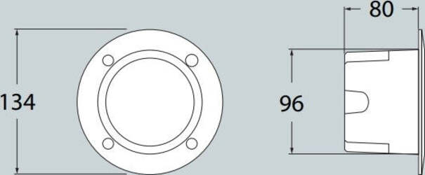Lampada LED per incasso a muro con forma circolare, realizzata in resina antiurto, stabilizzata ai raggi UV, inattaccabile da ruggine e corrosione. Fornito con inclusa lampadina a LED GX53 con Kelvin regolabile certificata TÜV-CB, di lunga durata ed elevata efficienza. Classe di isolamento II, grado di protezione IP66.