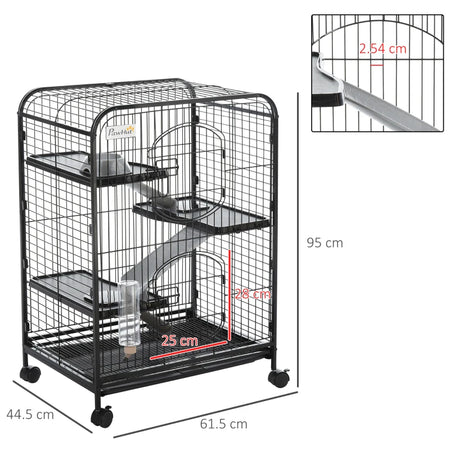 Gabbia Conigli Roditori in Metallo Nero 61x44.5 H95cm con Ruote