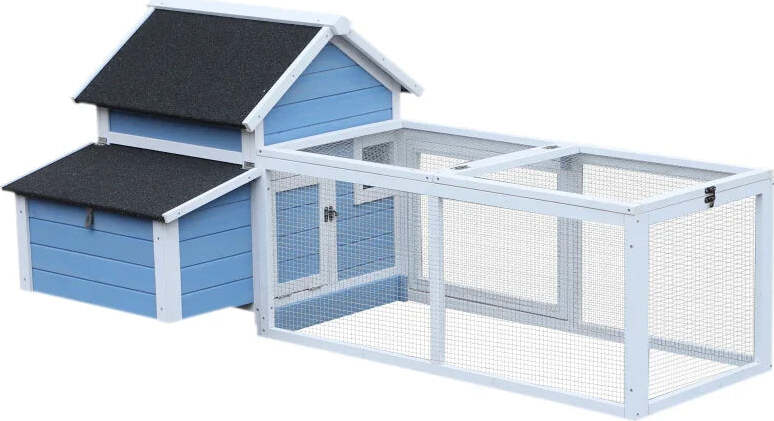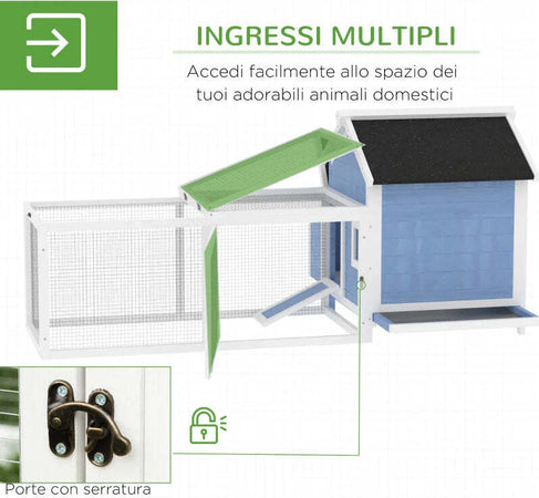 Gabbia per Galline Ovaiole con Zona Corsa e Vassoio di Nidificazione Rimovibile, Pollaio da Giardino in Legno con Tetto Impermeabile, 180x91x79 cm WD7D51-107WD7