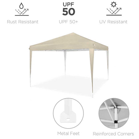 Gazebo 3x3 Pieghevole Beige Impermeabile Pieghevole Tendone Giardino Con Sacca