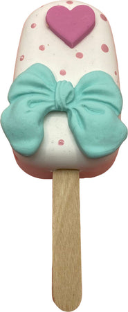 Recensioni su Gelato cremino finto da esposizione bianco con cuore, fiocco azzurro e pois