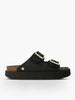 Sandalo nero in rafia intrecciata con plantare anatomico e cinturini con fibbie regolabili. Calzature vegane approvate da PETA, prive di animali e rispettose dell'ambiente.