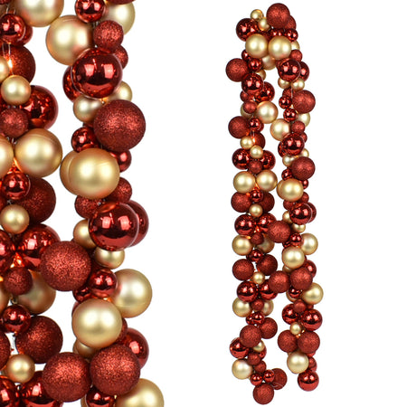 Ghirlanda Natalizia 180cm 142 Palline e Luci Led per Decorazioni Natalizie Rosso e Oro