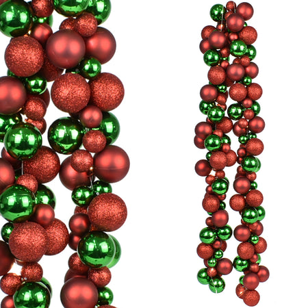 Ghirlanda Natalizia 180cm 142 Palline e Luci Led per Decorazioni Natalizie Rosso e Verde