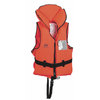 Giubbotto di salvataggio 100Ncon collo ergonomico fabbricato con tessuto 100% poliestere di colorearancione fluorescente riempito di schiuma in polietilene. Munito dichiusura a zip, cintura di regolazione con fibbia in plastica e laccetto diserraggio in vita, fibbia e sottogamba regolabile, strisce retroriflettenti efischietto. CE EN ISO12402-4