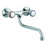 Gruppo lavello rubinetto doppio caldo freddo cromato a muro con canna bassa girevole