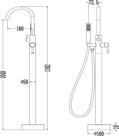 Gruppo Vasca 001 Rubinetto Incasso Pavimento Vasche Free Standing Ottone