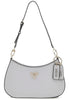 BORSA GUESSBorsa a spalla Noelle in ecopelleChiusura con cerniera lampo.Metalleria color oro pallido.Lavorazione saffiano.Charm logato alla base del manico.Triangolo logo frontale.Misure 29x18x6 cm.Manico regolabile e removibile lunghezza ca. 35 cm.
