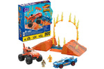 Preparati per azioni e scontri da brivido. Decorato con strisce tigrate e un telaio a forma di pinna di squalo, questo veicolo Monster Truck da costruire sfoggia dettagli autentici, con rampe e un anello di "fuoco" da superare. Costruisci, gareggia, schiantati e scontrati quando posizioni la micro action figure inclusa sul sedile del conducente, tira, rilascia e guarda il cofano che si stacca all'impatto.